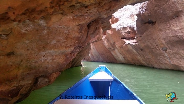 • Lancha: mais caro, com opção de privativo ou em pequenos grupos. Tem a vantagem da maior flexibilidade de horário, permitindo não apenas juntar os dois passeios no mesmo dia, mas estar no trecho mais famoso (a Gruta do Talhado), onde pode banhar-se no rio, sem a presença dos catamarãs e a enorme quantidade de turistas. Além disso, inclui a parada (e banho) no cristalino Vale dos Mestres.