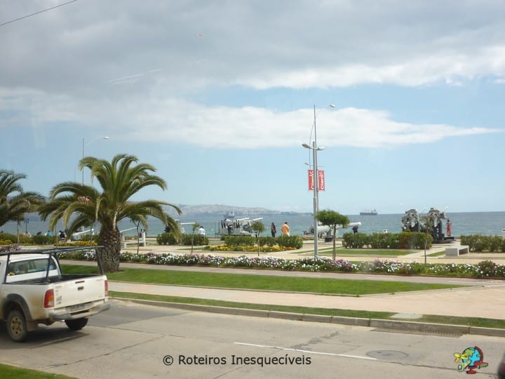 Retornamos ao ônibus e cerca de 20 minutos depois chegamos ao balneário de Viña del Mar. Possui mais de 300 mil habitantes e algumas das melhores praias chilenas – o que atrai muitos moradores de Santiago nas férias, finais de semana e feriado. Logo na entrada, paramos no cartão postal: Reloj de Flores (Relógio de Flores).